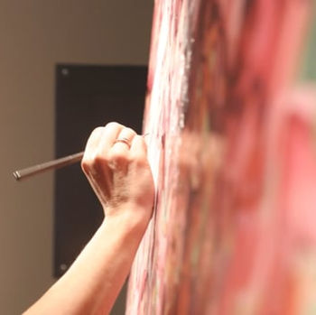 Shaped by my experience navigating ADHD and anxiety, my studio practice offers both structure and release. Each piece develops through cycles of addition and reduction, balancing instinctive mark-making with deliberate color decisions until resolution emerges.